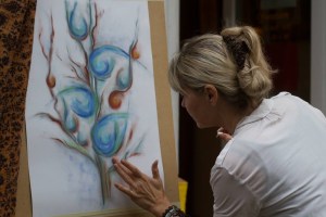 Ich bin von kleinen Formaten und vom Papier zum Großformaten und Leinwänden und Malkartons gegangen. Und auch die Themen sind jetzt mehrschichtiger, tiefgründiger und nach wie vor autobiografisch, aber mal anders – Themen einer Heilerin, einer Künstlerin, einer Energetikerin, einer Unternehmerin, einer reifen Frau und Visionärin. Das Künstleriche, Unternehmerische, Menschliche und Spirituelle gibt den Bildern eine neue Dimension: meine Kunst spricht die Menschen, die Zuschauer in der Seele, im Herzen an. Die Farben, Formen und Begleittexte haben gleiche Wichtigkeit, viele Zuschauer stehen vor den Bildern und weinen: und genau das will ich mit meiner Kunst erreichen: die Menschen in der Tiefe der Seele, im Herzen berühren.. Menschen in einer Sinneskrise, Lebenskrise zu unterstützen und Möglichkeiten und Lösungswege zu zeigen.