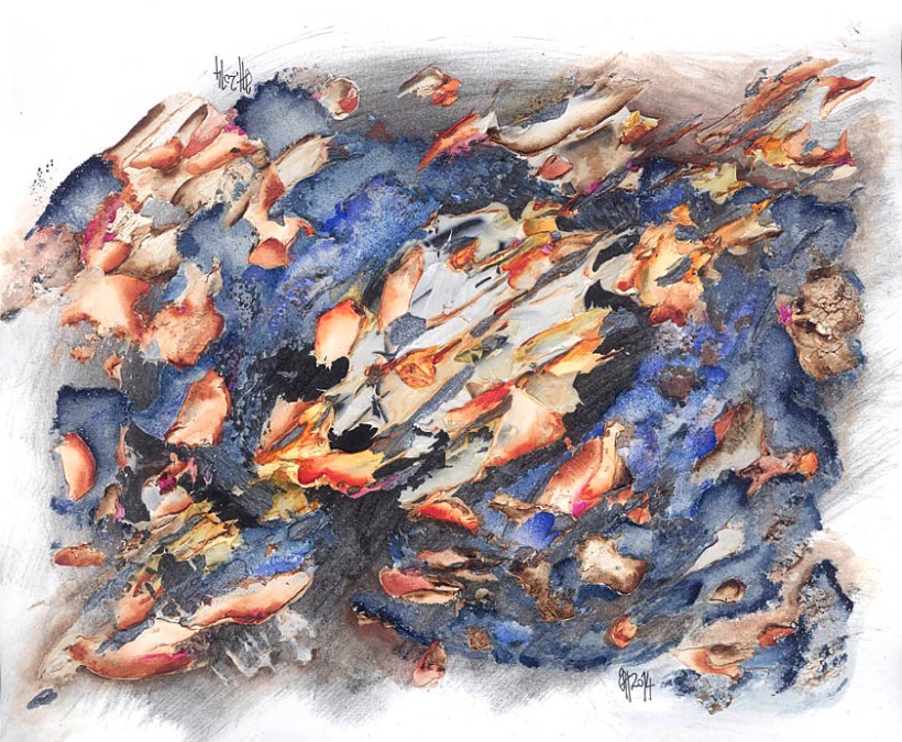 Energiebilder entstehen mit Pastellkreiden oder mit Acrylfarben, die durch Mischtechniken, Spachtelmasse und Aquarell sowie Naturmaterialien etwas Sanftes erreichen.